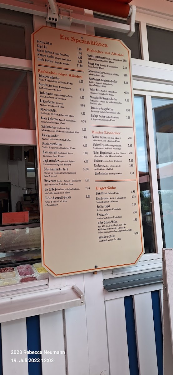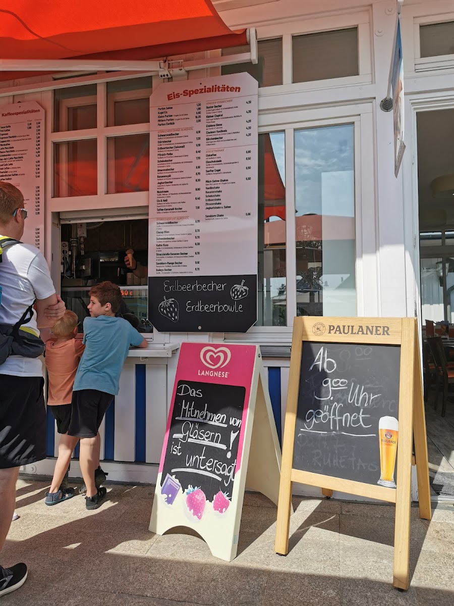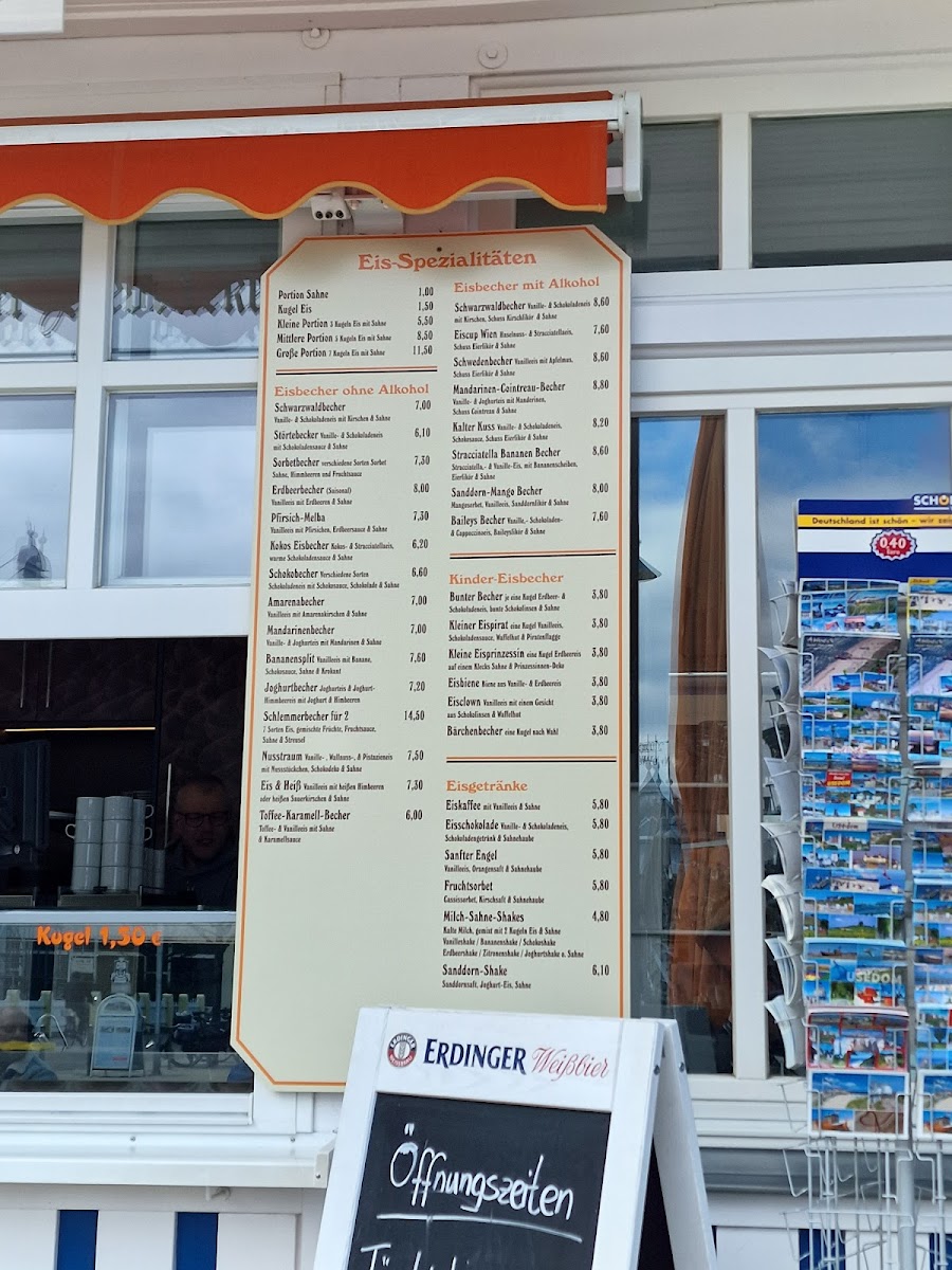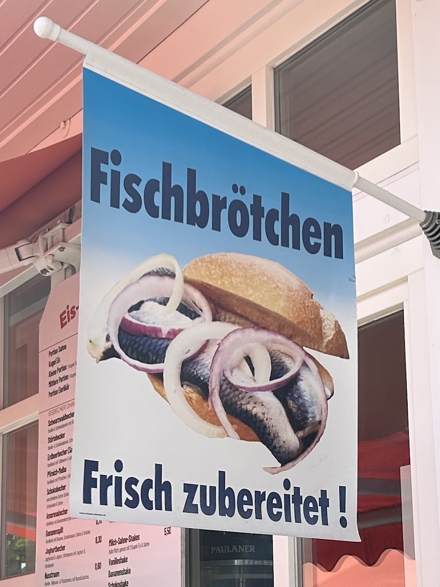 Food offerings include light bites and small meals, with options such as belegte Brötchen (filled bread rolls) and fish-based snacks exemplified by regional fish dishes. The dessert selection includes traditional cakes and pastries, for instance Streuselkuchen and Kirschstreuselkuchen, providing sweet complements to the beverage choices.